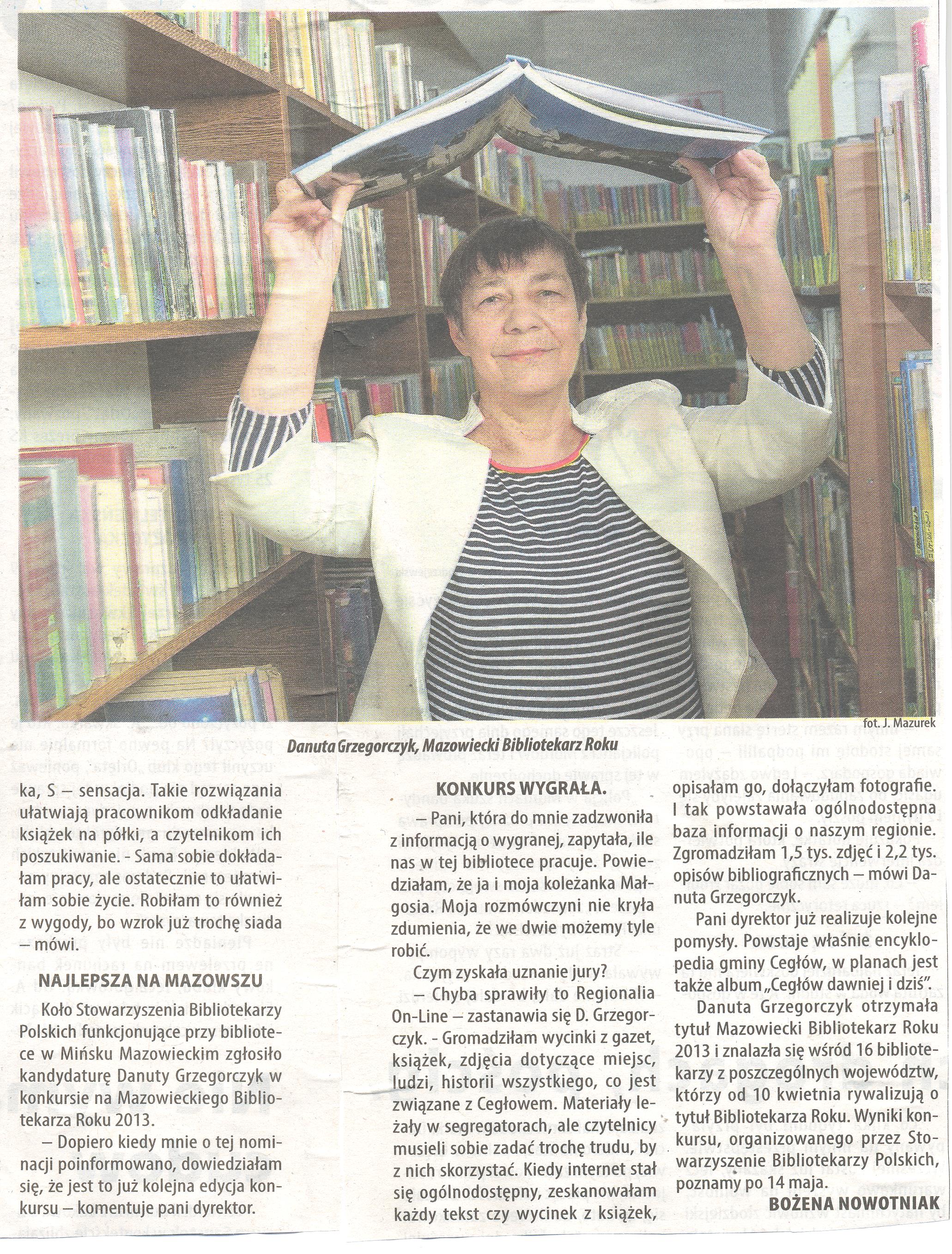 Grzegorczyk Danuta Mazowiecki Bibliotekarz Roku 2013 nagroda - 2014